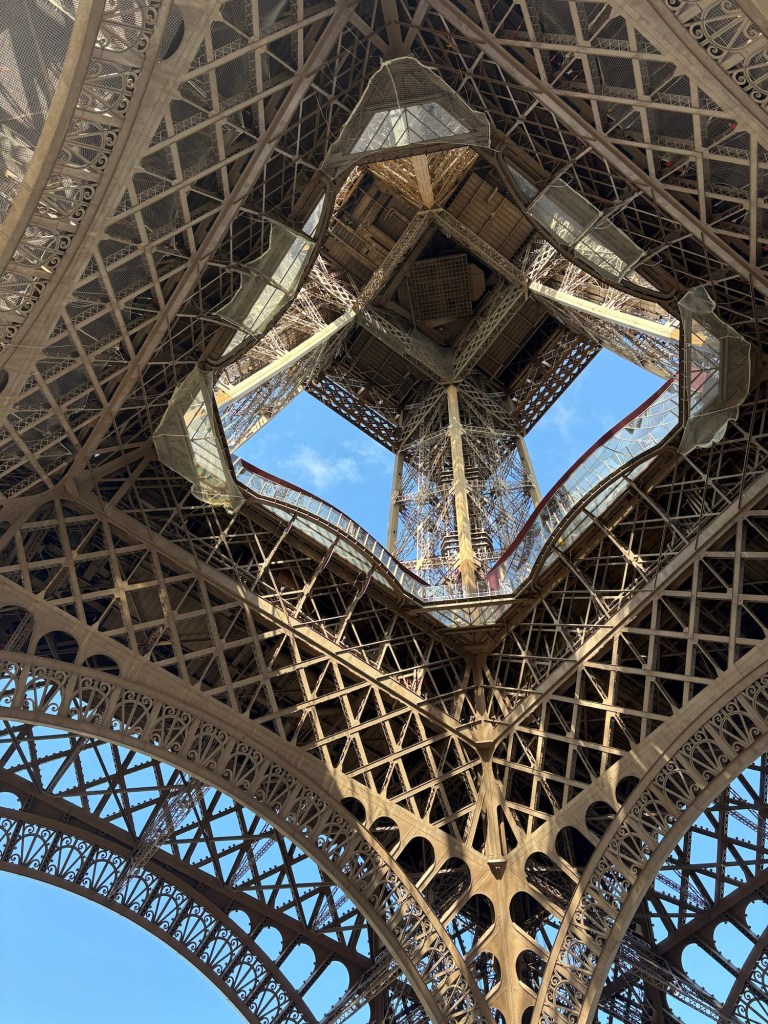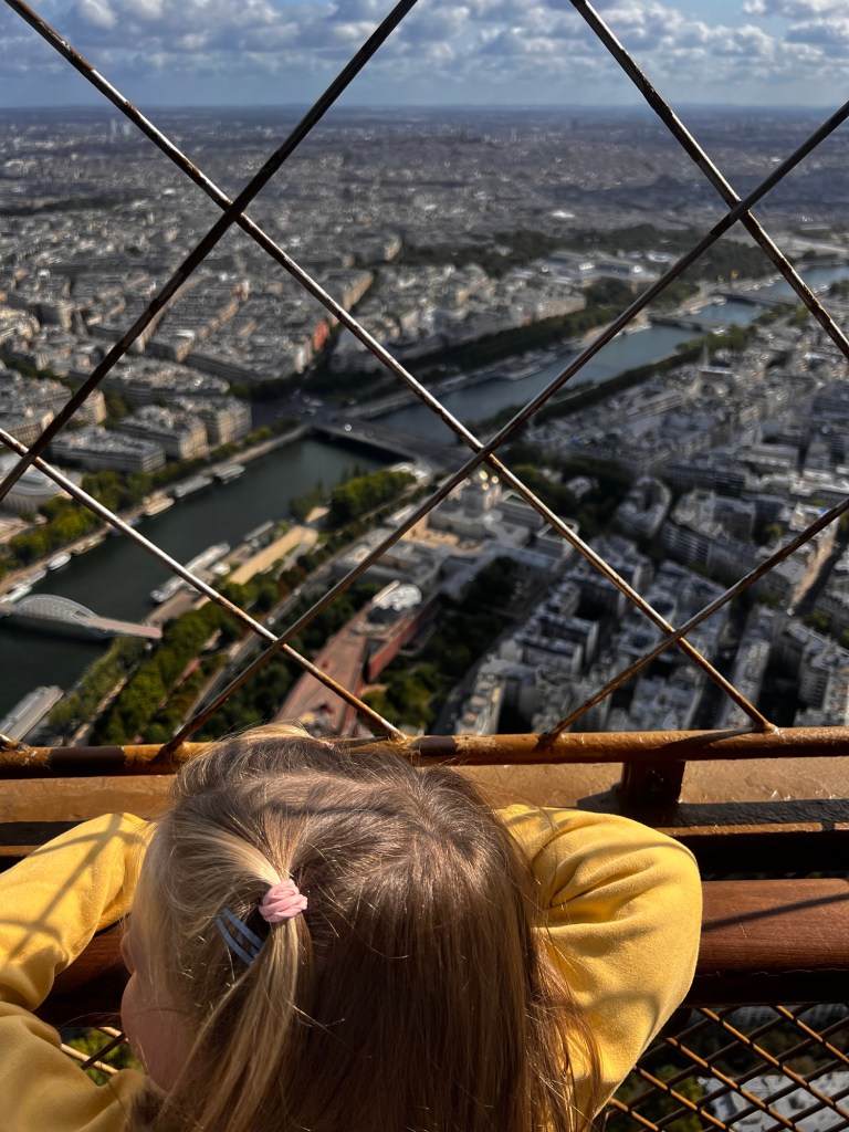 We took the lift to the middle floor and took the kids on a birdseye tour of Paris. After a trip to Paris’ most expensive gift shop on the second floor, we split up and whilst our fearless youngest ascended to the top for more views, our eldest made the descent by stairs.