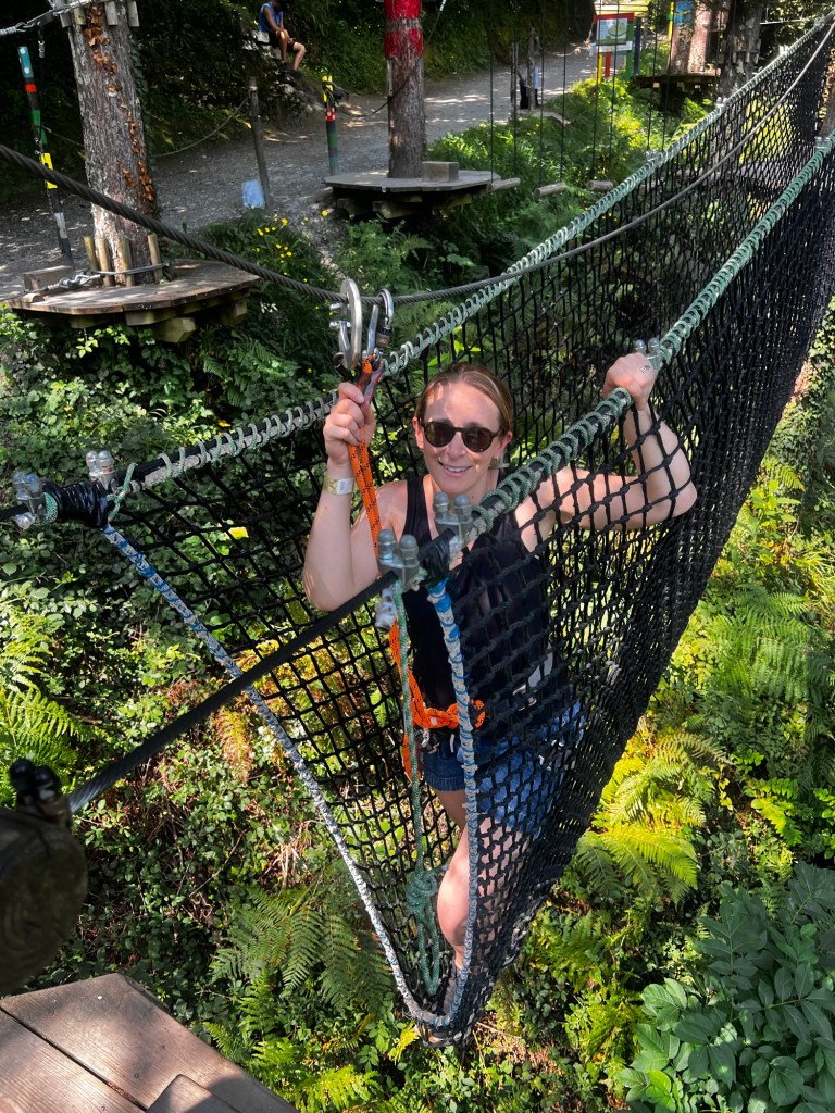 The tree top walks were essential apparently for all of us as the kids needed adult supervision so we all got kitted out and headed up the hill and into the forest. Not everyone was so excited to be suspended from a rope hanging over a steep valley.