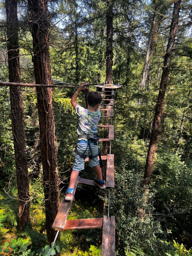 The youngest was determined she wasn’t scared to try the zip line across the valley. So again supervised we took the zip lines zig zagging across the valley. The kids just hold on, I had to try and slow down as I zoomed into the landing post.